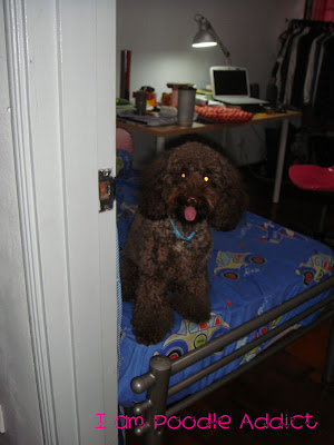 - My bed and Amos - Amos loves my bed till the MAX. so far Amos is clean, i wash his 'Birddie' after he pee. He play toys on my bed, eating treats also on my bed. What to do? He is a good jumper, there is no way i can make him stay out of my bed. So, i will have to wash my bedsheet more often.